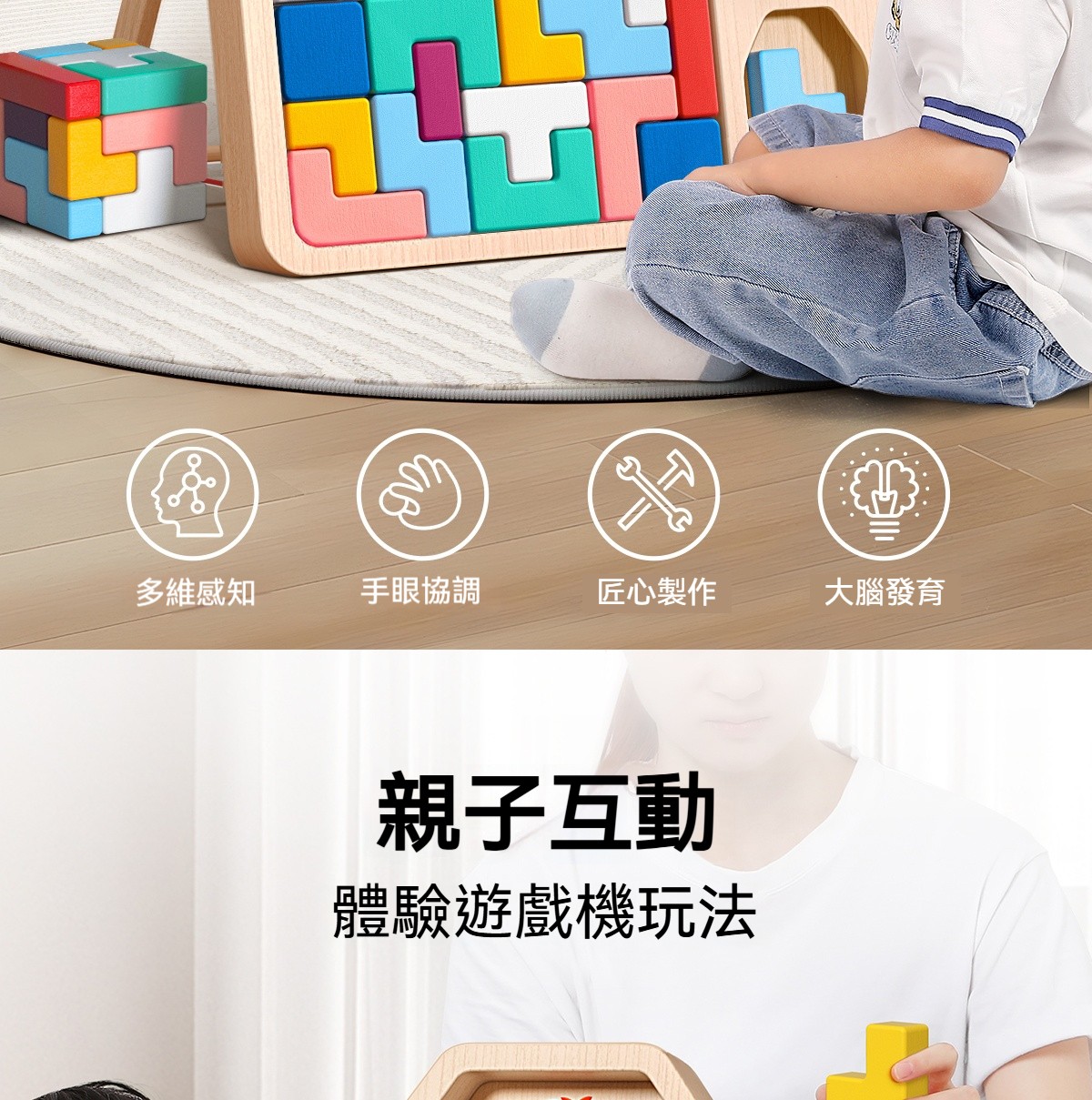 【俄羅斯方塊積木】✅親子互動,體驗遊戲機玩法 ✅ 3种玩法,趣味升級 ✅ 加厚松木,耐用不易壞✅ 精美禮盒,送禮收納兩不誤